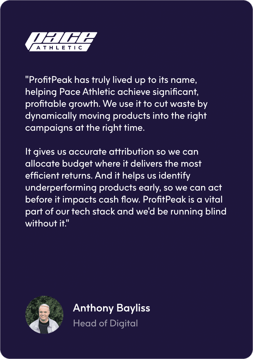 The implementation of ProfitPeak’s Dynamic Product Tagging and Instant Analytics delivered transformative results for Pace Athletic:
